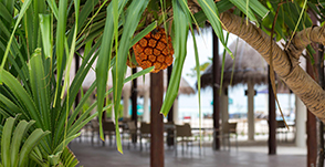 Ресторан, укрывшийся в тенистой прохладе пальм.